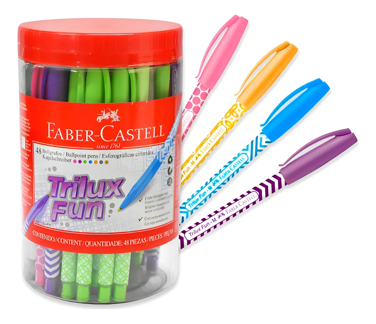 Boligrafos Faber Trilux Fun x 48 diferentes colores