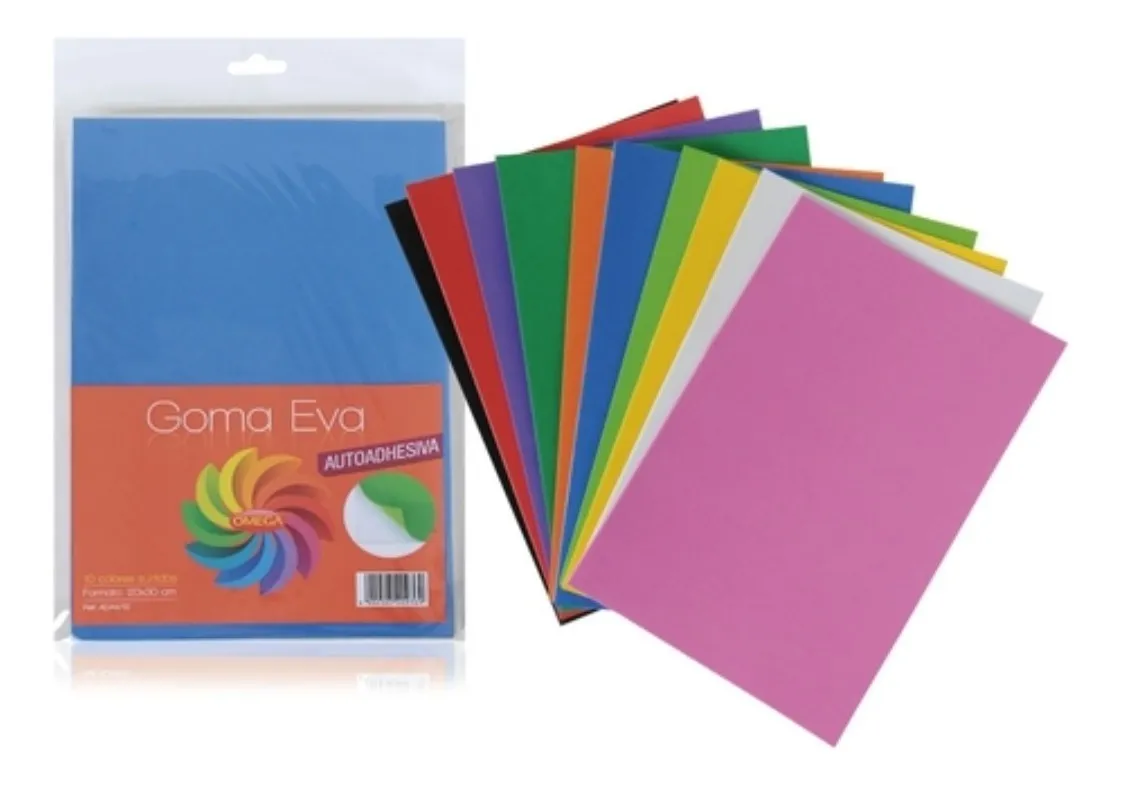 Goma Eva OMEGA Lisa Adhesiva 20x30 (Paq x 10 Surtidos)