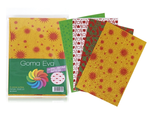 Goma Eva OMEGA con Brillantina impresa 20x30 (Pq x 8)