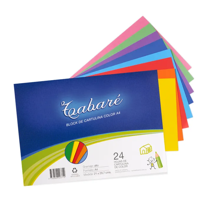 Block TABARÉ Cartulina A4 pack x 24 hojas. Colores