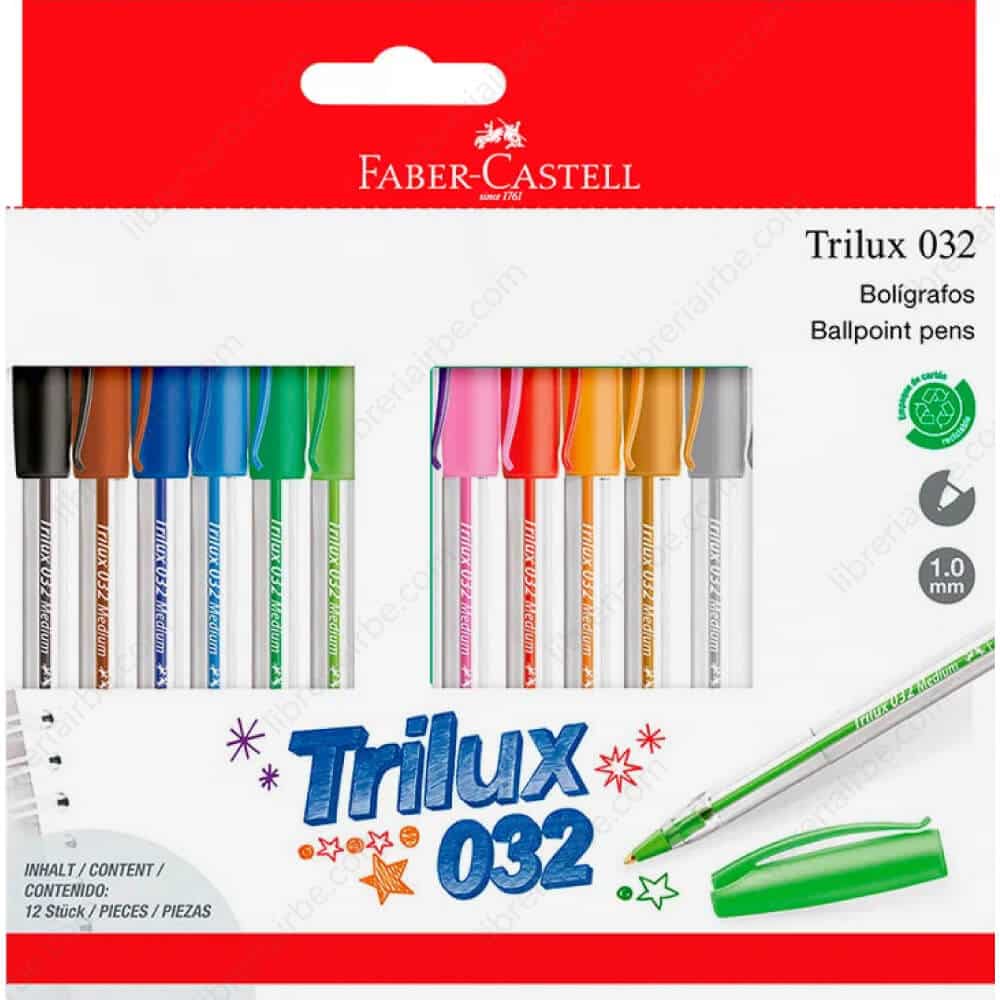 Boligrafos Faber Trilux Fun x 12 colores