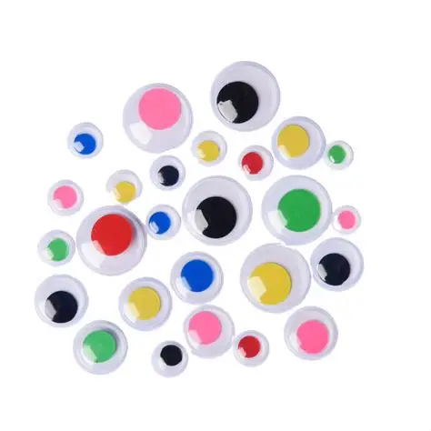 Ojitos surtidos de colores desde 6 mm a 4 cm=104 unid.